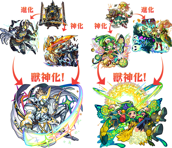 角色育成後除了可進化或神化之外,其中一部份的角色還可以「獸神化」!快來育成更加強大的角色吧!