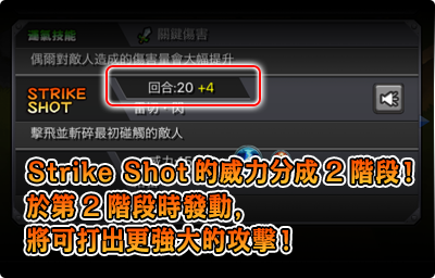 各角色所擁有的必殺技「Strike Shot」可分成2階段發動,威力更強!