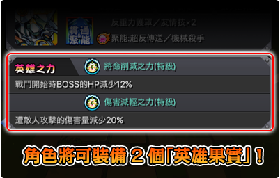 可以讓角色裝備2個「英雄果實」,提升角色的能力!
