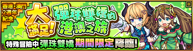 突破「大滿足!彈珠雙嬌的港澳之旅」冒險即可獲得!※預計於活動期間內隨時降臨